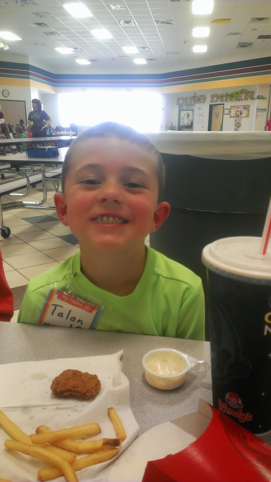 I guess I always knew this day would come, but it's finally here and I am not ready. Ok maybe a little ready. My little boy starts kindergarten today. He has never gone to Mother's Day out or preschool. He has been playing soccer for a long time so I know he knows how to interact with other kids. I know Talan adjusts well to new situations, but this will be different than anything he has ever done. We have been preparing all summer. We started adjusting his bedtime every week so that by the time school started he would be in bed by 8:30. We have not had any issues with that so far. I do get worried about lunch time with him. He is a pretty picky eater so for now I think it will be peanut butter and jelly or lunchables. Hopefully, Kendall and I can make it up there at least once a week to break up the cycle a little bit. I have decided for the time being that we will walk to school in the mornings and probably home in the afternoons with the exception of Tuesday because I work.